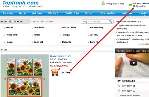 Việc đặt hàng trên Toptranh.com rất đơn giản, bao gồm 4 bước sau Bước 1: Nhấp chuột vào bức tranh mà bạn đã chọn được