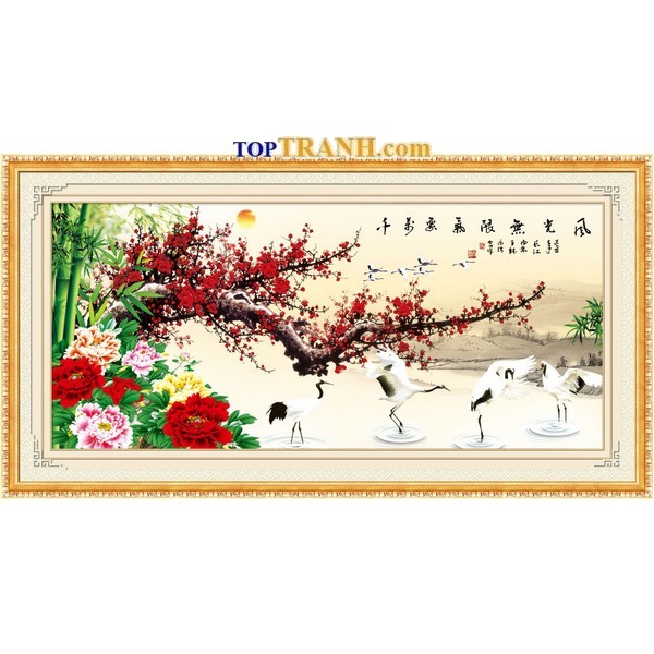 Tranh thêu đàn hạc và cành đàoMã số : ZA5D099
