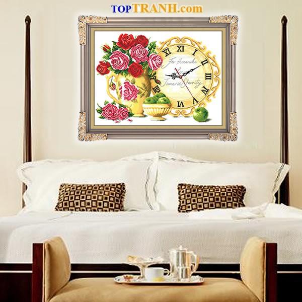 Tranh thêu đồng hồ